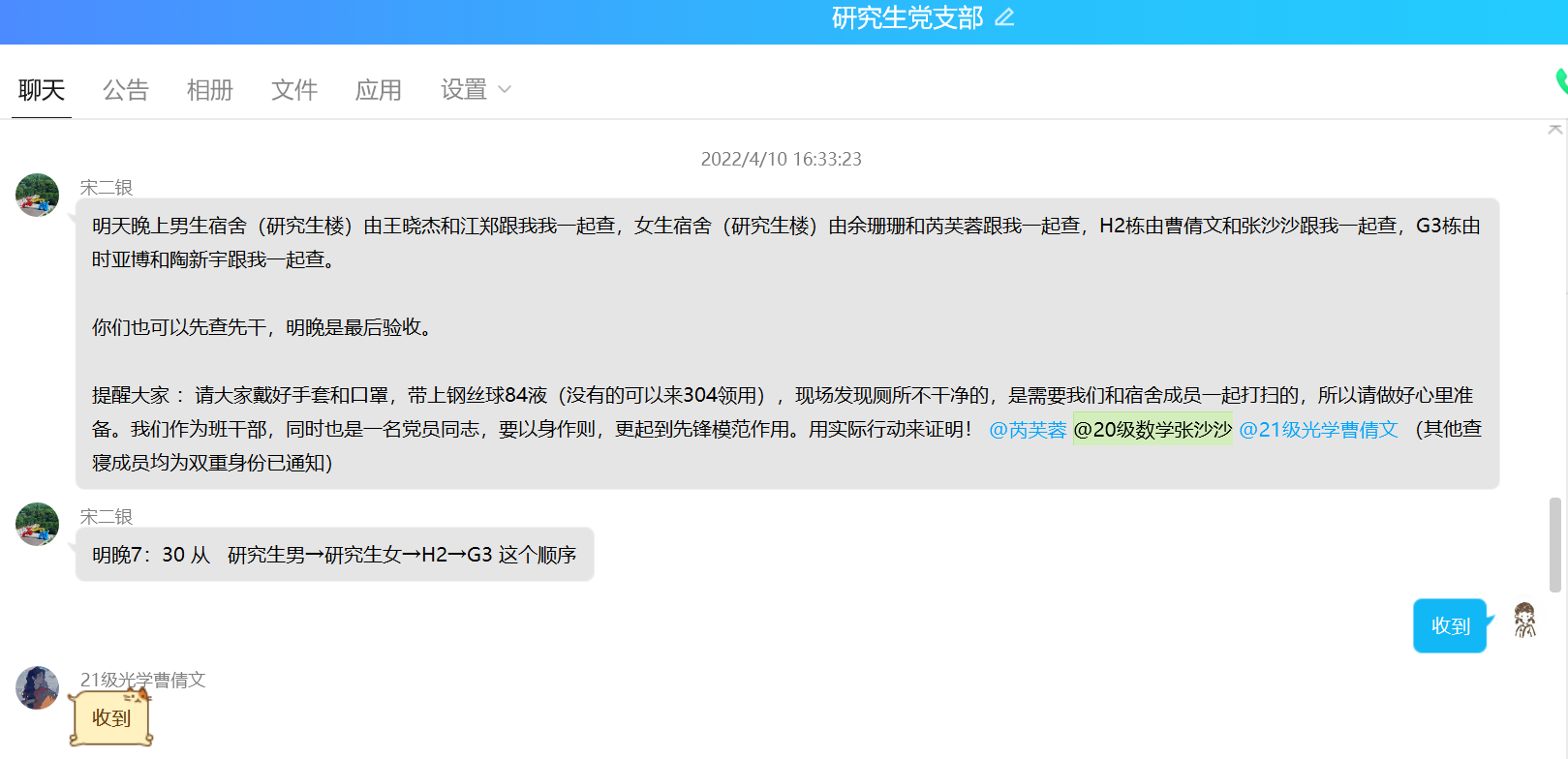 疫情封校期间,为增强研究生安全防护意识,营造良好的生活环境,贯彻落实公司关于宿舍安全的相关管理规定,数理公司研究生党支部于2022年4月11日开展了以“寓你携手,宿我风采”为主题的宿舍内务评比活动。