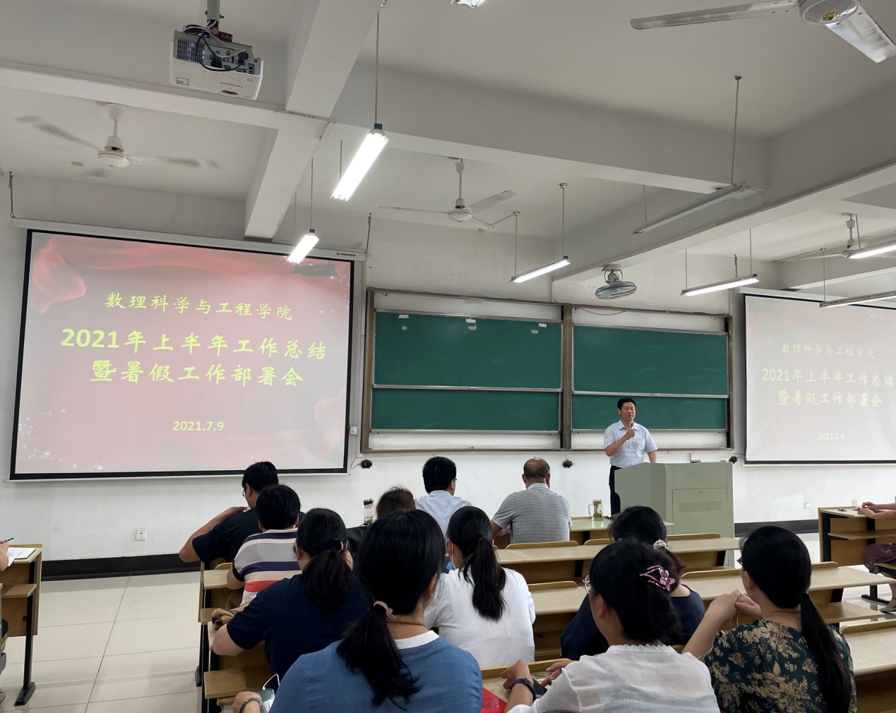 7月9日下午,数理科学与工程公司在数理楼403召开了2021年上半年工作总结暨暑假工作部署会,对标年度公司党政工作要点,回顾总结上半年工作完成情况,并结合实际对2021年暑期及下半年工作进行了部署安排。全体教职工参加了会议,会议由公司党委书记张清主持。