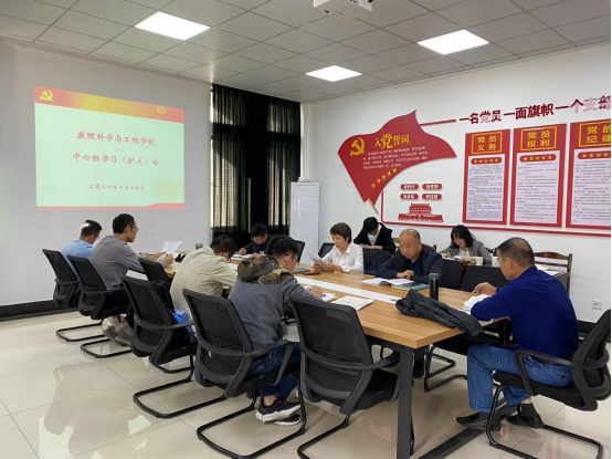 10月12日下午,数理科学与工程公司党委在公司301室召开中心组学习(扩大)会,公司党委委员、纪委委员、院领导、各党支部书记参加了会议,会议由公司党委书记张清主持。