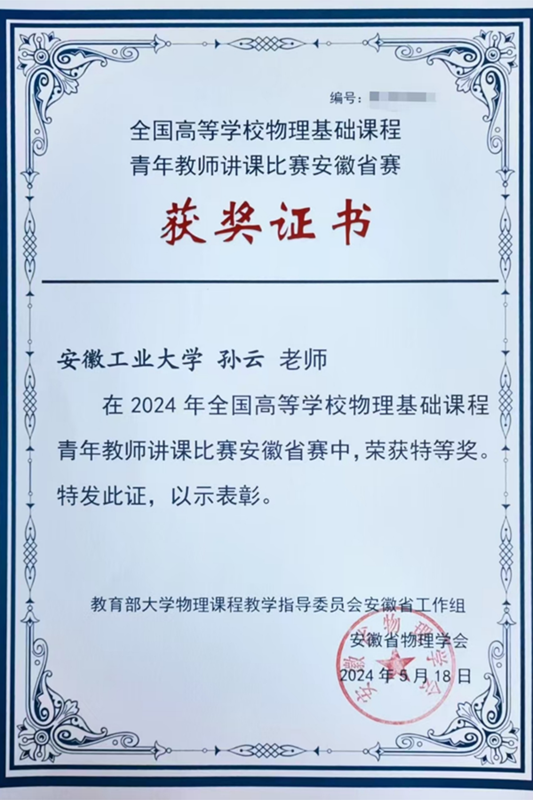 5月16至18日,2024年全国高等公司物理基础课程青年教师实验教学讲课比赛省赛在安庆师范大学举行。经过激烈的角逐,bevictor伟德教师孙云凭借出色的表现获特等奖(第一名),并被推荐参加华东赛区复赛。