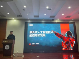 活动期间,南京优奈特林新华总经理和东科半导体(安徽)股份有限公司华东区域产品经理(公司19级优秀学子)汤宗光为全体微电子员工分别做了“嵌入式人工智能技术的应用和发展”和“从校园到职场—半导体从业心得”的报告,林总从人工智能的发展历程、当前嵌入式基于人工智能的发展方向进行了详细的讲解;汤经理向同学们介绍了行业现状与趋势,提出了宝贵的成长建议。