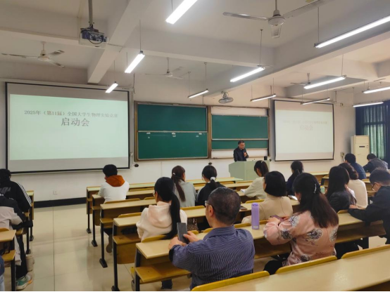 3月24日下午,2025年(第11届)全国老员工物理实验竞赛(CUPET)启动会在数理楼403室举行。大学物理部党支部书记孙文斌作赛事主题报告,副经理李勇分享评委经验,几十名师生参会。