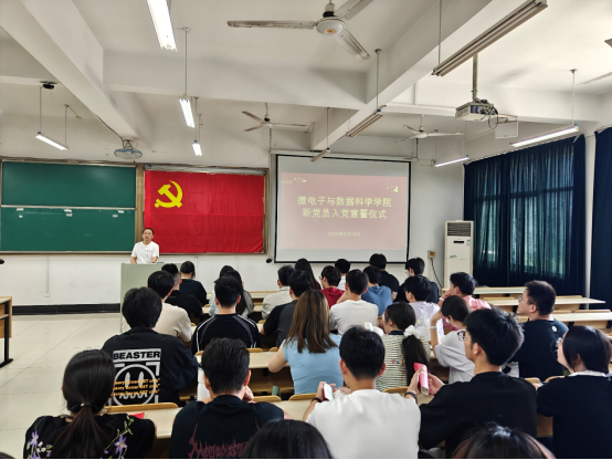 仪式在气势磅礴的《国际歌》中拉开帷幕。张敏宣读了公司党委关于党员发展和转正的批复。随后,汪春胜及各员工支部书记为新发展的预备党员佩戴党员徽章。全体新党员和老党员面向党旗庄严宣誓,誓言铿锵有力,表达了党员们对党的忠诚和为人民服务的决心。数据本科生党支部陈健平作为新党员代表发言,郑重承诺用实际行动践行初心使命。数学本科生党支部王紫焉作为老党员代表发言,对新党员予以祝贺,结合自身经历分享了入党后的成长感悟。