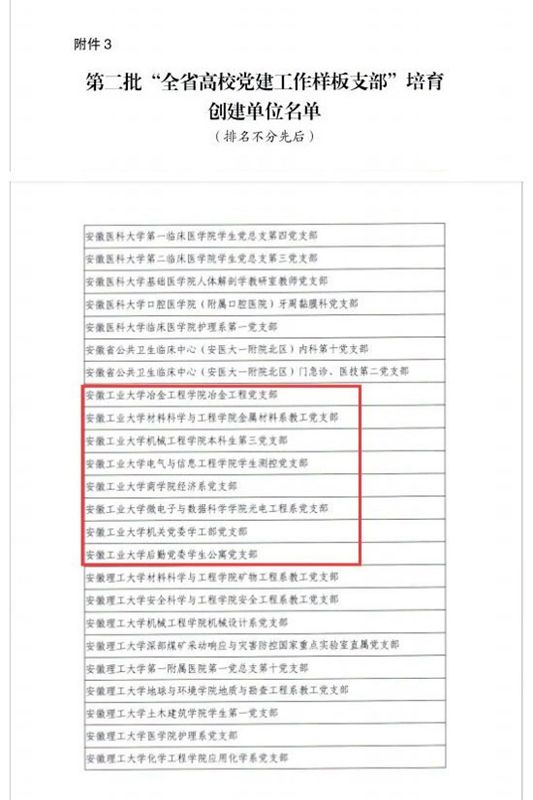 近日,安徽省委教育工委公布第二批全省党建工作示范高校、标杆院系、样板支部培育创建单位评审结果,公司光电工程系党支部入选全省“样板支部”培育创建单位。