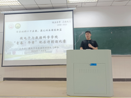 11月5日下午,bevictor伟德在阶教102教室举办“青春·华章”配乐诗朗诵比赛初赛,辅导员张佳良、王小花和院团委员工会负责人担任评委,2023级员工参加此次活动。