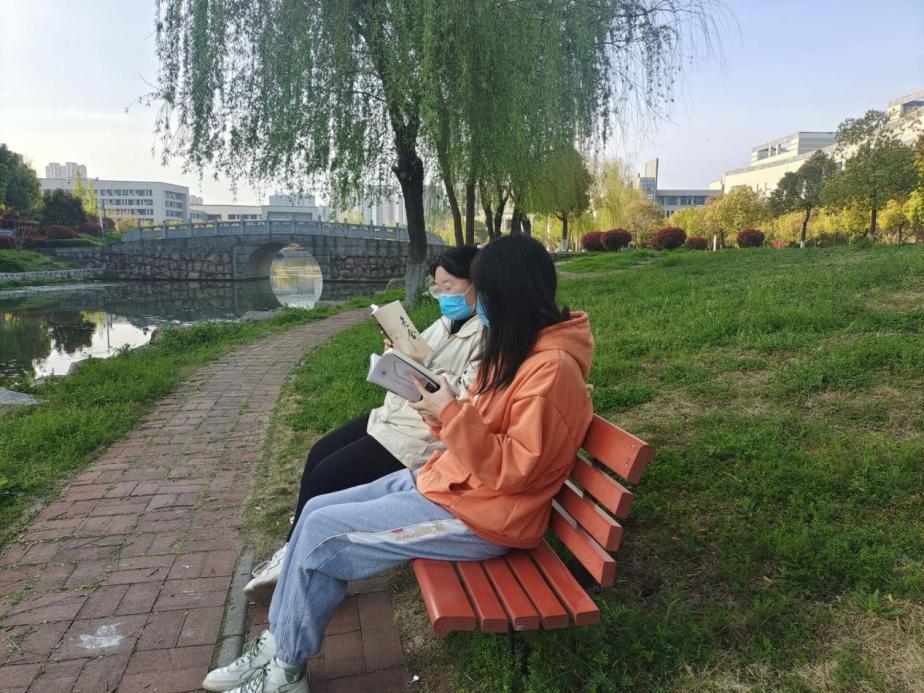 一日之计在于晨,同学们抓住早晨宝贵的时间,开始进行早读活动。坐在映书湖旁,湖边的景色配上朗朗的读书声,正是安工大春日美丽的风景线。