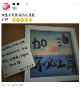 活动分为“温馨送祝福”、“抽取小惊喜”、“PK赢大奖”等环节。活动当天,女生们前往数理楼302办公室领取手写节日祝福明信片,每一张明信片都包含了公司对女同学们真诚的希冀与祝福;抽奖环节,女生们通过抽签获得一份数字油画礼包,女生填涂完毕后,将作品发布到QQ平台上,既可以展示自己的作品风采,又可以吸引好友对作品进行点赞投票,点赞量排名前三的选手可获得精美奖品一份。