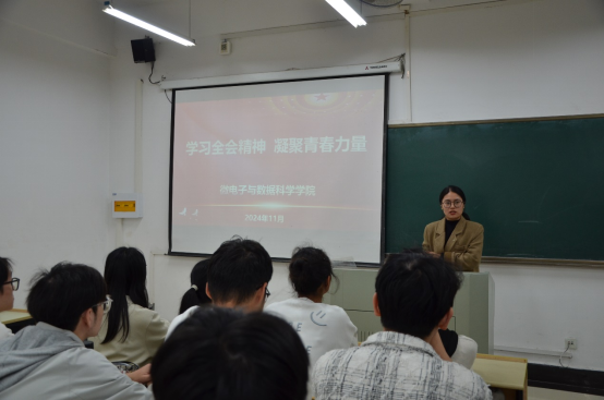 王小花聚焦科技创新取得的新突破,以神舟十九号载人飞船成功发射、神舟十八号载人飞船返回舱顺利着陆为切入点,引出新时代我国航天事业的自立自强、创新发展与推进中国式现代化的联系,深入阐述了“教育、科技、人才是中国式现代化的基础性、战略性支撑”这一重要论述的重要内涵。党的二十届三中全会应历史之变、解时代之问,是新时代新征程上推动全面深化改革向广度和深度进军的总动员、总部署。她鼓励同学们,要在时代的浪潮中追逐梦想,在改革的洪流中劈波斩浪,脚踏实地,勇往直前,在全面深化改革、推进中国式现代化中展现青春作为、彰显青春风采、贡献青春力量。