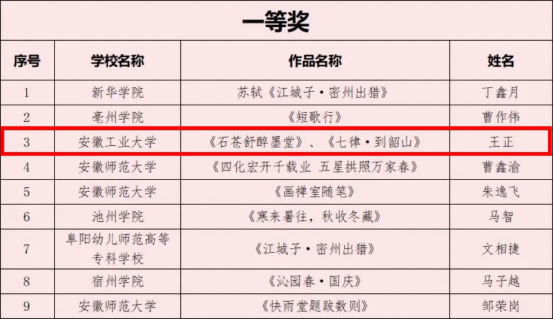 丹青吐彩迎国庆,翰墨飘香颂华夏。公司师生踊跃参与,以优秀文艺作品为载体,创作了一篇篇优秀的汉字书写作品,抒发了新时代青年饱满的爱国热情,充分展现了公司广大师生的文化自觉、文化自信和文化担当,传递出昂扬向上的社会正能量。本次“翰墨庆华诞”安徽省高校校园汉字书写大赛,共评出一等奖10件,二等奖20件,三等奖38件,优秀奖37件。公司推荐的10幅作品中,共有6幅作品获得奖项,其中:一等奖2项;二等奖1项;三等奖1项;优秀奖2项。