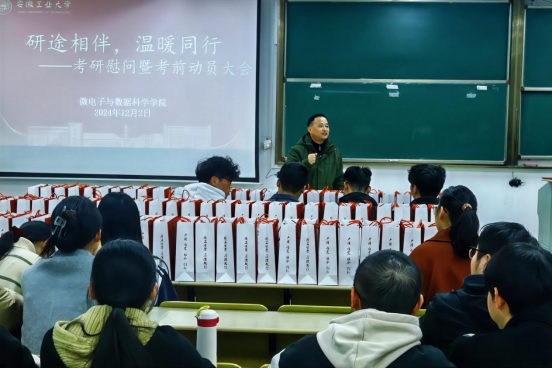 汪春胜代表公司向全体考研学子表达了公司的关心,送去公司全体老师们的祝福。他强调,考研不仅是对个人学术能力的考验,更是青春岁月中一次重要的自我挑战和成长机遇。他希望同学们秉持公司“严谨、唯实、融合、创新”的院训精神,在考研战场上全力以赴,为自己的青春交上一份满意的答卷。